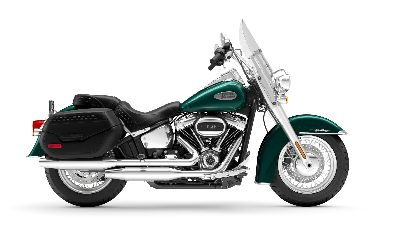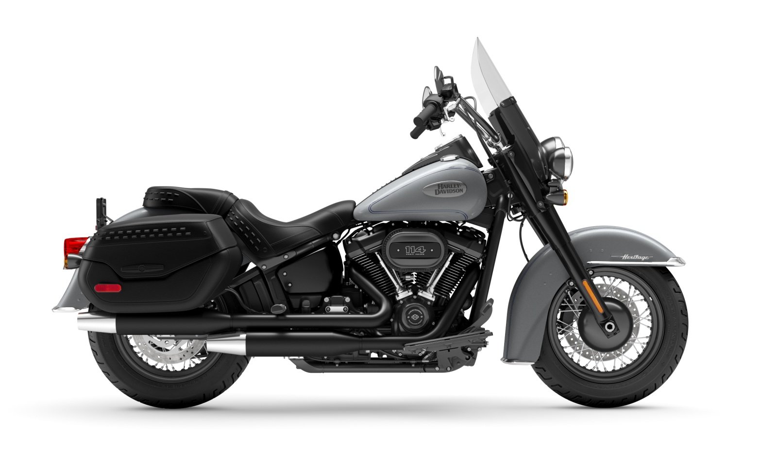 The refined finishes, modern edge and reinvigorated ride of the Heritage Classic model take nostalgia ripping into the here and now. The Heritage Classic comes in two finishes from the factory. Make noise with the Milwaukee-Eight® 107 with classic chrome style from the engine to the steel laced wheels or the 114 that comes with blacked-out finishes.