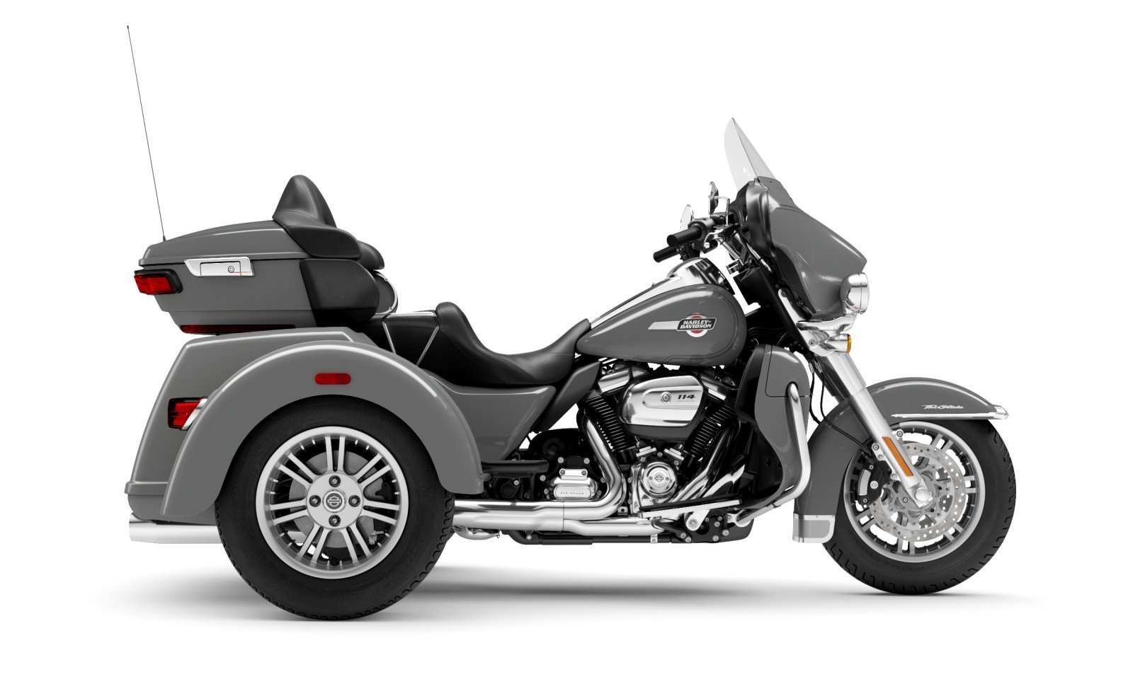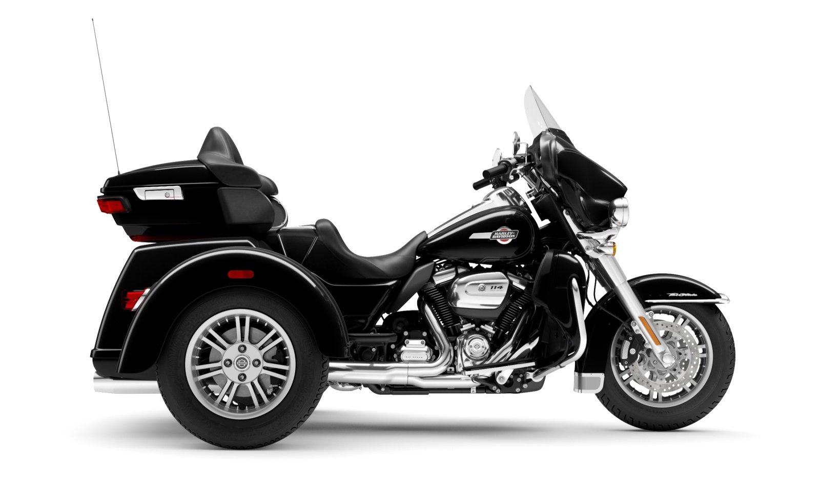 TRIKE : FLHTCUTG Custom touring style and easy handling features that lets you roll with confidence for longer. It' s everything you love about H-D Touring, just on three wheels. The new premium touring front and rear suspension is calibrated specifically for trike models. Easy tool-free preload adjusting, new cornering enhanced linked brake system with ABS and Traction Control, and luxurious seating put you in control of an unmatched ride. Incorporates an Antilock Braking System (ABS) and Traction Control System (TCS) that work together to provide enhanced cornering capability. In addition, the Milwaukee-Eight® 114 engine gives you passing and horizon-chasing power.