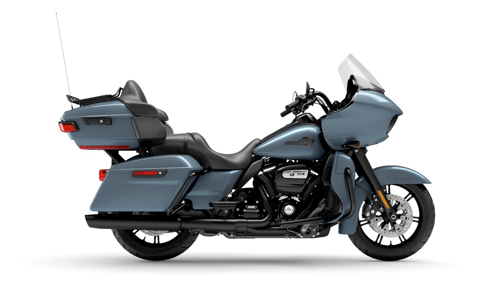 A long-haul, two-up touring specialist featuring the distinctive aerodynamic Road Glide shark-nose fairing with triple split stream vents that limit rider head buffeting. The standard Milwaukee-Eight 114 engine delivers smooth, powerful touring performance while dual Daymaker® LED headlamps offer outstanding night visibility. Premium Touring suspension includes an easy-adjust rear shock pre-load for a smooth, confident ride. Reflex™ Electronic Linked Brakes with ABS deliver confident braking performance. The Boom!™ Box GTS infotainment system with color touch screen offers navigation, communication and entertainment options.GRAND AMERICAN TOURING : FLTRK The category we' ve created from the ground up. Go the distance, in style. We've been building the motorcycles to help you discover it in the most epic way possible since we invented the fully dressed touring machine in the 1960's. Entire continents; and all the mountain ranges, canyons, glaciers, small towns, deserts, cities, roadside attractions, adventures, and stories they contain; are yours for the taking in the saddle of a Harley-Davidson® motorcycle.